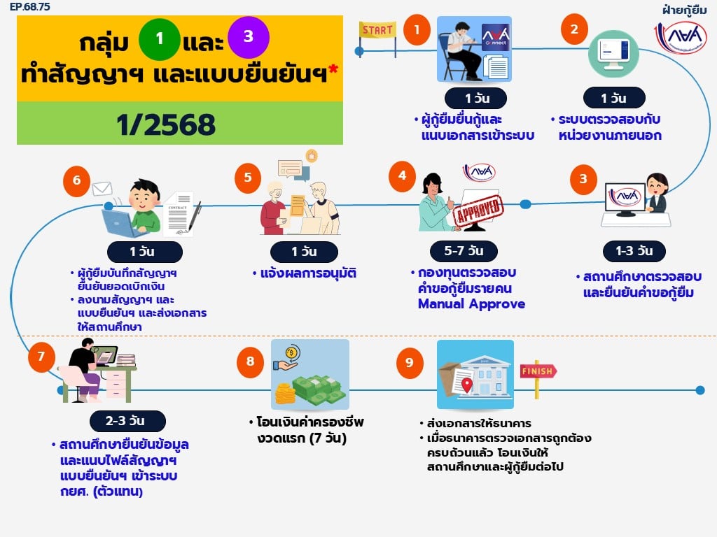 กยศ. แจ้งแนวทางการให้กู้ยืมเงิน ประจำปีการศึษา 2568 สำหรับผู้กู้ยืมเงินรายเก่าเลื่อนชั้นปี เปลี่ยนระดับการศึกษา เปลี่ยนสถานศึกษา หรือเปลี่ยนหลักสูตรสาขาวิชาฯ