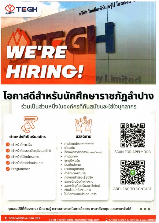 บมจ.ไทยอีสเทิร์น กรุ๊ป โฮลดิ้ง ประชาสัมพันธ์รับนักศึกษาฝึกงานและนักศึกษาจบใหม่ Posted by: itechlpru Sep 25, 2025 in ประชาสัมพันธ์อื่นๆ, ฝึกงาน, สมัครงาน บมจ.ไทยอีสเทิร์น กรุ๊ป โฮลดิ้ง ประชาสัมพันธ์รับนักศึกษาฝึกงานและนักศึกษาจบใหม่ 2025-09-25 itechlpru